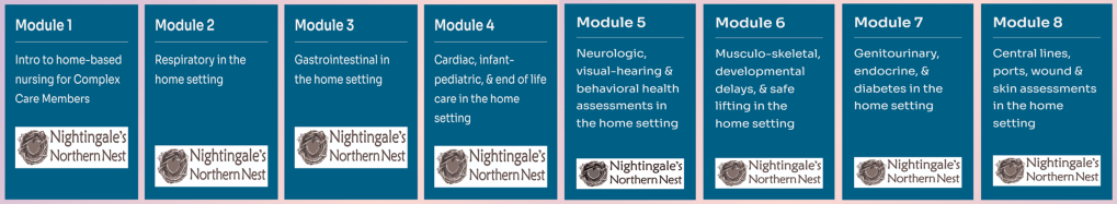 3/4/2026: LEGACY TRAINING PROGRAM: Nightingale’s Northern Nest is thrilled to announce a Complimentary 30-day access to the CNS Training Modules. The Full Program or Partial Program can be accessed with free contact hours for RN’s & LPN’s. Please use the “contact us” tab above and provide your name, RN/LPN, email, telephone, zip code, and # of years as a nurse. Access to the RELIAS Platform is set up monthly for a 30-day period. The training modules have been made possible through a previous grant from MassHealth through the Massachusetts Executive Offices of Health and Human Services. The LEGACY PROGRAM is continuing through volunteer work and donations. Please email us at info@nightingalesnorthernnest.com if you are interested in volunteer opportunities or providing a donation. The training modules are listed above.